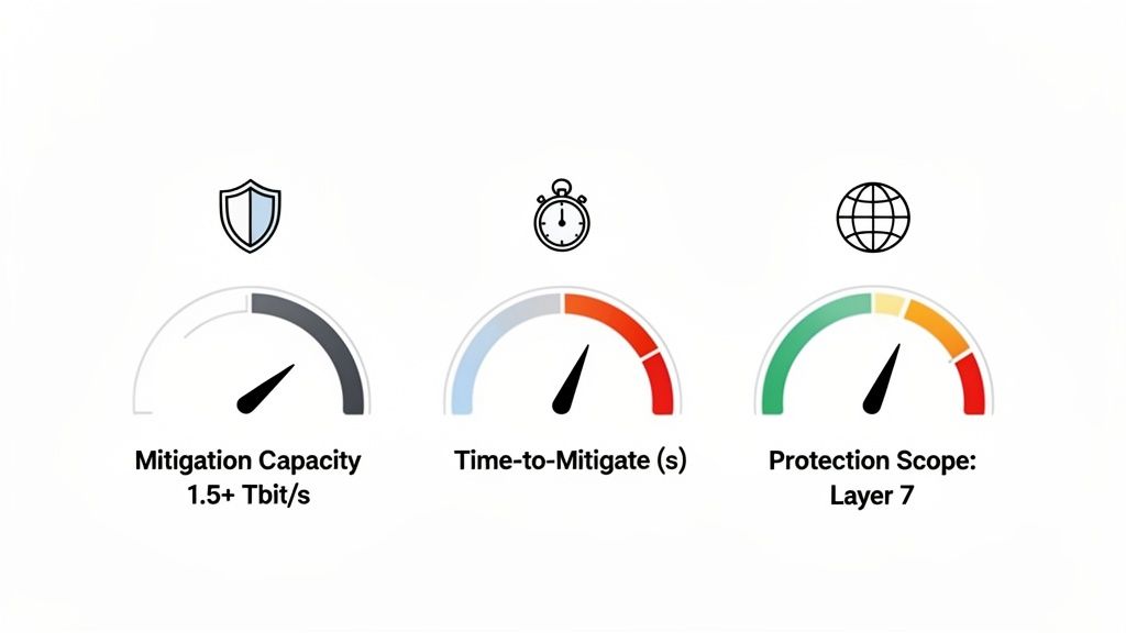 When you're shopping for a DDoS-protected dedicated server, it's easy to get lost in marketing buzzwords. But the truth is, not all protection is created equal. To find a solution that will actually keep you online when an attack hits, you need to dig into the numbers—the real-world metrics that define a provider's defensive capabilities.