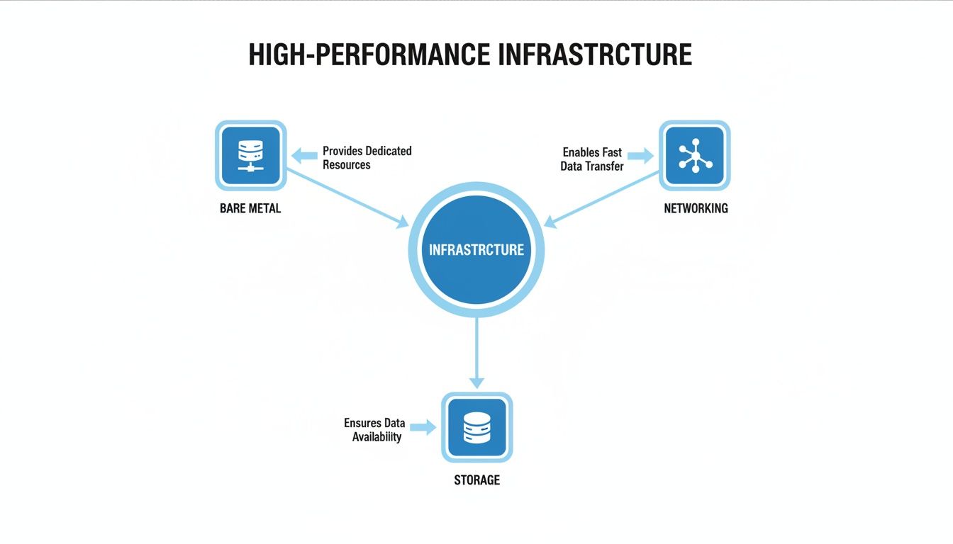 This diagram shows how bare metal, networking, and storage form the core of a high-performance system.