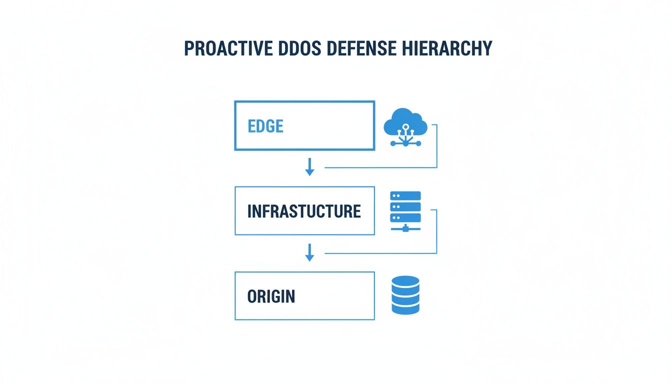 Each layer—Edge, Infrastructure, and Origin—has a specific job in filtering malicious traffic, progressively reducing the burden on your core systems.