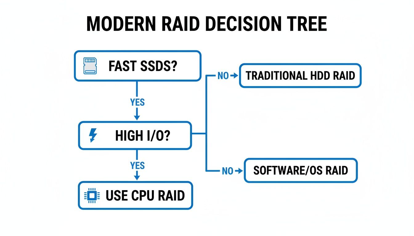 As the flowchart shows, when you're dealing with high-I/O workloads on fast SSDs, letting the server's CPU handle RAID often becomes the most direct path to wringing every last drop of performance out of your hardware.
