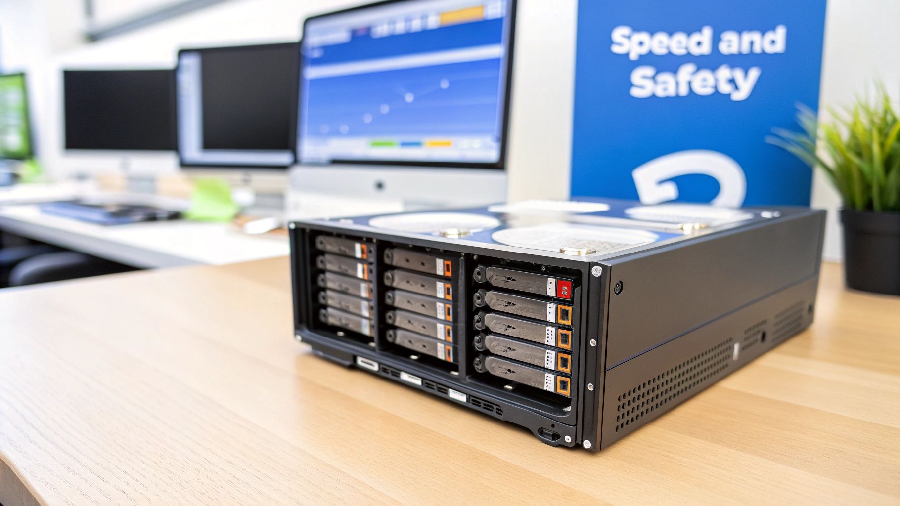 This speed is a massive operational advantage for any business that depends on its data. RAID-equipped servers have long been a key to efficiency, which is why the RAID controllers market is projected to see significant revenue growth. For industries like cloud computing and finance where uptime is non-negotiable, the fast rebuilds of NVMe aren't just an improvement—they're a game-changer. You can discover more insights about RAID market trends to see how this technology continues to evolve.